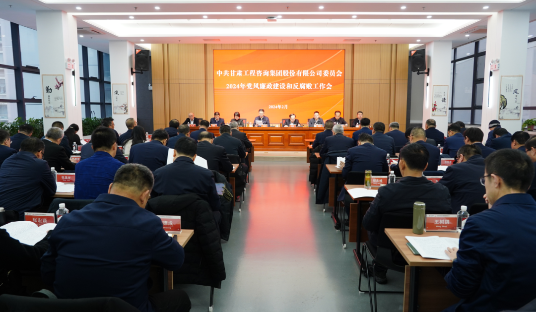 2月3日,甘肅工程咨詢集團召開2024年黨風廉政建設和反腐敗工作會議。集團公司黨委書記、董事長馬明出席會議并講話,黨委副書記、總經理張佩峰主持會議,紀委書記、監(jiān)察專員師宗正作紀檢監(jiān)察工作報告,其他領導班子成員參加會議。會議傳達學習二十屆中央紀委三次全會、十四屆省紀委三次全體會議、省國資國企黨風廉政建設和反腐敗工作會議精神,全面總結了2023年工作,安排部署了2024年重點任務,并開展了警示教育。