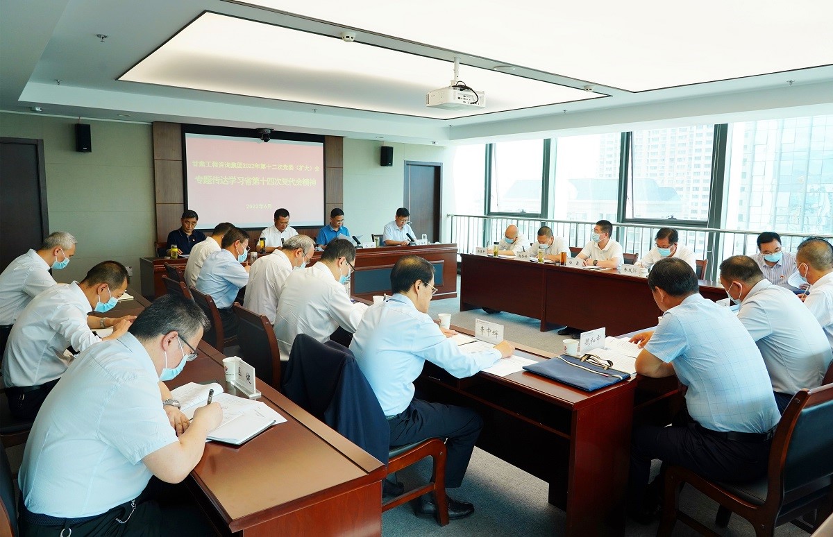 6月2日,甘肅工程咨詢集團召開黨委(擴大)會議,專題傳達(dá)學(xué)習(xí)中國共產(chǎn)黨甘肅省第十四次代表大會精神。會議由黨委書記、董事長宋忠慶主持,集團公司黨委委員,財務(wù)總監(jiān)、董事會秘書,機關(guān)各部門負(fù)責(zé)人;各子公司黨委書記、董事長(執(zhí)行董事)參加會議。