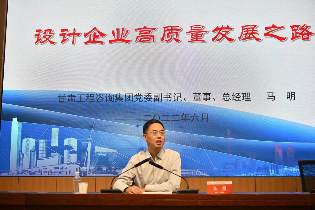 6月9日,在甘肅省建筑設計研究院有限公司喜迎建院70周年華誕之際,集團公司黨委副書記、總經理馬明受邀以《設計企業(yè)高質量發(fā)展之路》為題作專題講座。集團公司經理層成員、各部門主要負責人及兄弟單位主要領導,建筑設計院領導班子成員、全體中層干部聆聽講座。