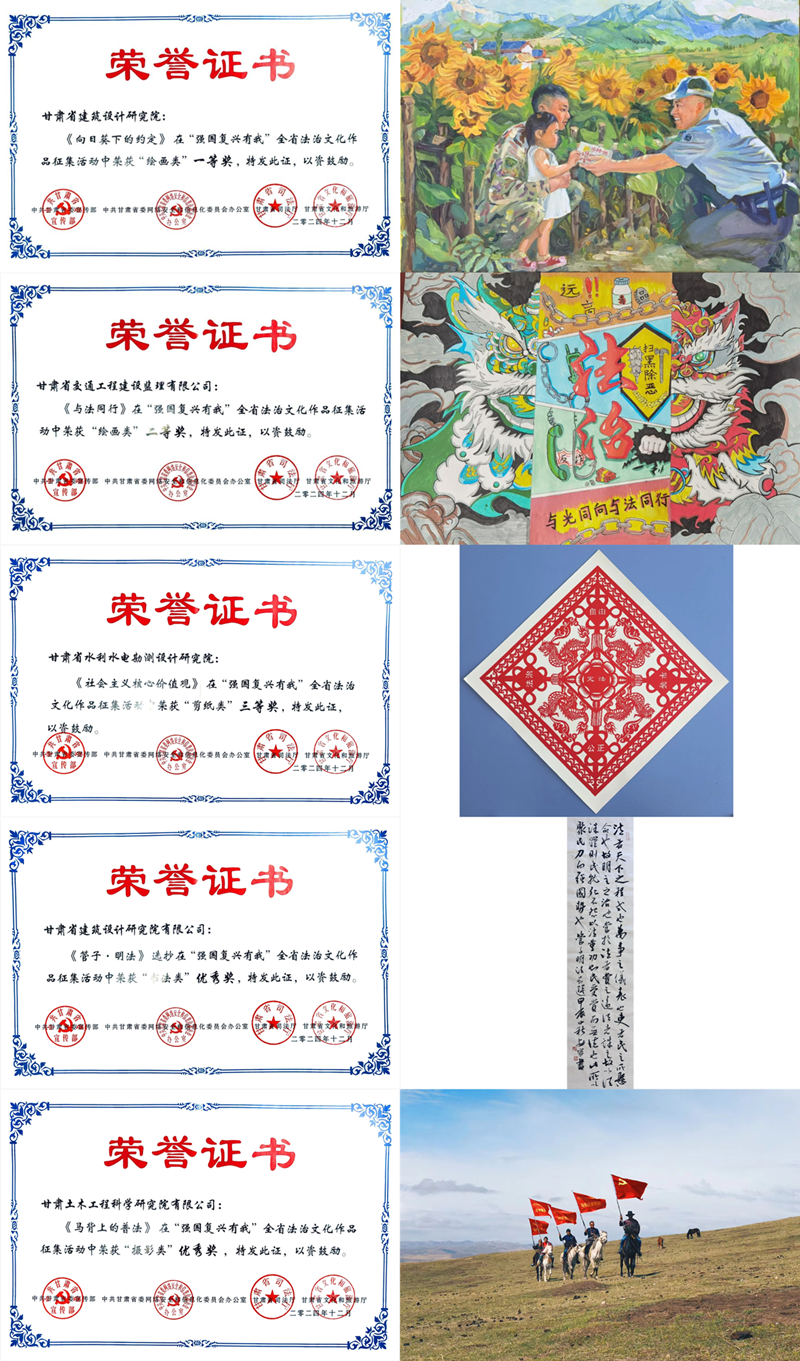 近日,從省委宣傳部等多部門聯(lián)合主辦的“強國復(fù)興有我”全省法治文化作品征集展播活動傳來喜訊,甘肅工程咨詢集團在此次活動中斬獲佳績。
