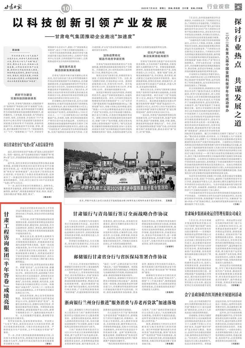 今年以來,甘肅工程咨詢集團(tuán)堅決貫徹落實(shí)省委、省政府決策部署及省政府國資委相關(guān)要求,錨定目標(biāo)、加壓奮進(jìn),全力以赴拼經(jīng)濟(jì)、穩(wěn)增長、增效益,順利實(shí)現(xiàn)半年既定目標(biāo),在服務(wù)全省高質(zhì)量發(fā)展進(jìn)程中展現(xiàn)出新作為。