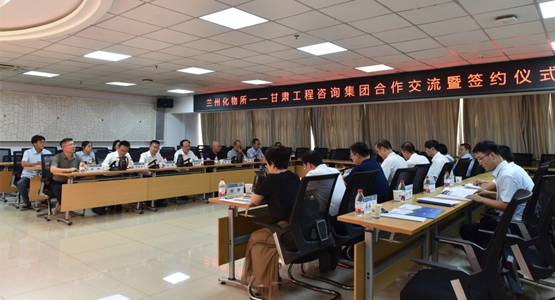 8月15日,甘肅工程咨詢集團黨委書記、董事長張佩峰一行到訪中國科學院蘭州化學物理研究所,與所長周峰座談交流并簽訂科技合作協(xié)議。協(xié)議的簽訂,標志著雙方合作進入新階段。蘭州化物所黨委委員張永勝,集團公司副總經(jīng)理曹慶,黨委委員、副總經(jīng)理白鑫參加。