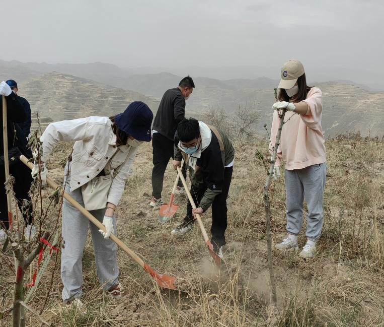 活動(dòng)現(xiàn)場(chǎng),大家三人一組,互相配合,挖坑、放苗、培土、澆水一氣呵成,悉心將一棵棵充滿(mǎn)生機(jī)和希望的樹(shù)苗植入山坡,現(xiàn)場(chǎng)呈現(xiàn)一片熱火朝天的景象。一排排樹(shù)苗枝頭掛著志愿卡片,正式“安家落戶(hù)”,和志愿者一起成為山坡上一道美麗的風(fēng)景。
