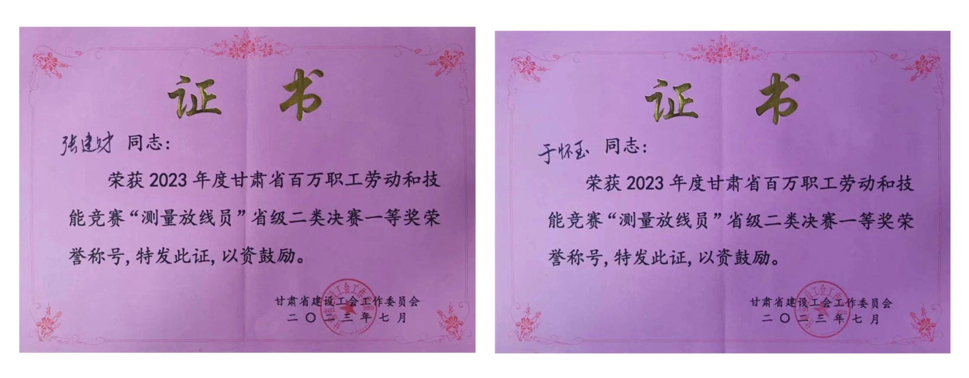 近日,從省建設(shè)工會“2023年度甘肅省百萬職工勞動和技能競賽”組委會傳來好消息,省建筑設(shè)計院選派的巖土技術(shù)中心、巖土工程公司張建財和于懷玉兩名同志,榮獲2023年度甘肅省百萬職工勞動和技能競賽“測量放線員”省級二類決賽一等獎榮譽稱號。