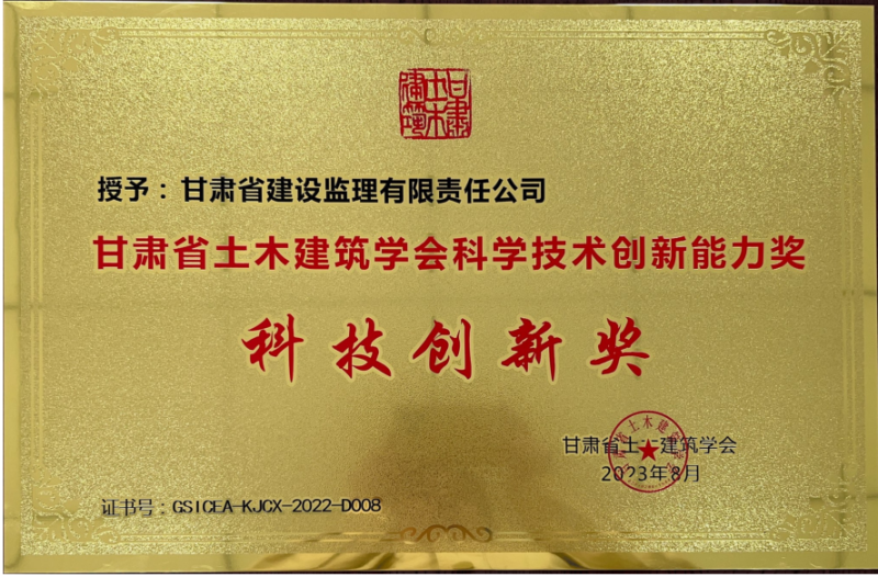 近日,省建設(shè)監(jiān)理公司榮獲“甘肅省土木建筑學(xué)會科技創(chuàng)新獎”。此獎項充分肯定了公司核心技術(shù)能力,彰顯了公司的品牌實力和行業(yè)影響力。
