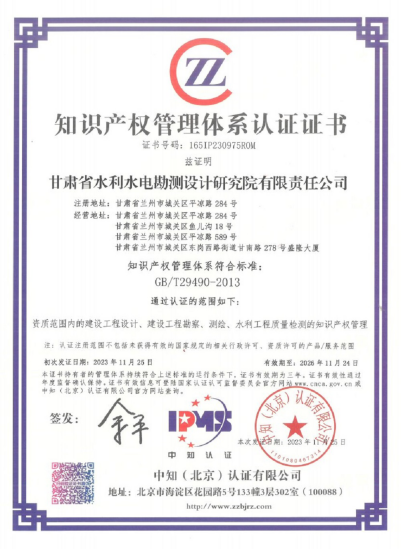 近日,省水電設(shè)計(jì)院順利通過(guò)《企業(yè)知識(shí)產(chǎn)權(quán)管理規(guī)范》(國(guó)家標(biāo)準(zhǔn)GB/T 29490-2013)的認(rèn)證評(píng)審工作,取得《知識(shí)產(chǎn)權(quán)管理體系認(rèn)證證書》,標(biāo)志著在知識(shí)產(chǎn)權(quán)創(chuàng)造、運(yùn)用、管理和保護(hù)方面邁上新臺(tái)階。