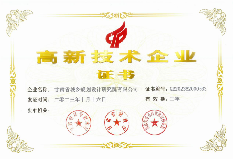 近日,經(jīng)過嚴格的審批程序,省規(guī)劃設(shè)計院申報的國家高新技術(shù)企業(yè)最終通過認定并獲得由省科學技術(shù)廳、省財政廳和國家稅務(wù)總局甘肅省稅務(wù)局聯(lián)合頒發(fā)的“高新技術(shù)企業(yè)證書”(證書編號:GR202362000533)。