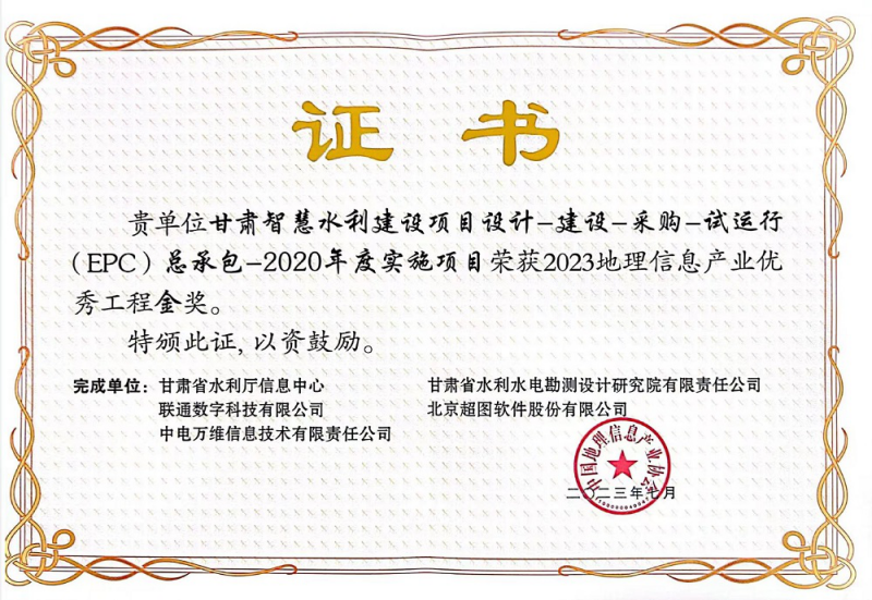 近日,第一屆中國測繪地理信息大會在浙江召開。由省水利廳實(shí)施、省水電設(shè)計(jì)院參與完成的“甘肅智慧水利建設(shè)項(xiàng)目設(shè)計(jì)-建設(shè)-采購-試運(yùn)行(EPC)總承包-2020年度實(shí)施項(xiàng)目”榮獲2023中國地理信息產(chǎn)業(yè)優(yōu)秀工程金獎。