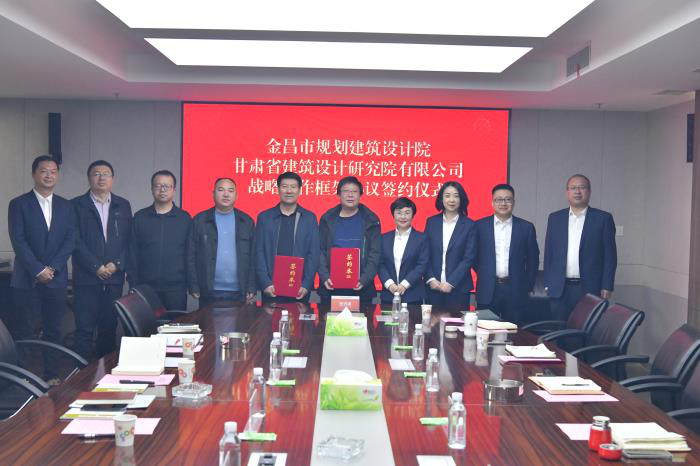 11月7日,省建筑設(shè)計(jì)院與金昌市規(guī)劃建筑設(shè)計(jì)院戰(zhàn)略合作協(xié)議簽訂儀式在蘭州舉行。金昌市規(guī)劃建筑設(shè)計(jì)院董事長魯?shù)糜瘛⒏笨偨?jīng)理王鋒輝和省建筑設(shè)計(jì)院黨委副書記、總經(jīng)理周文新,副總經(jīng)理王璐參加簽約儀式。