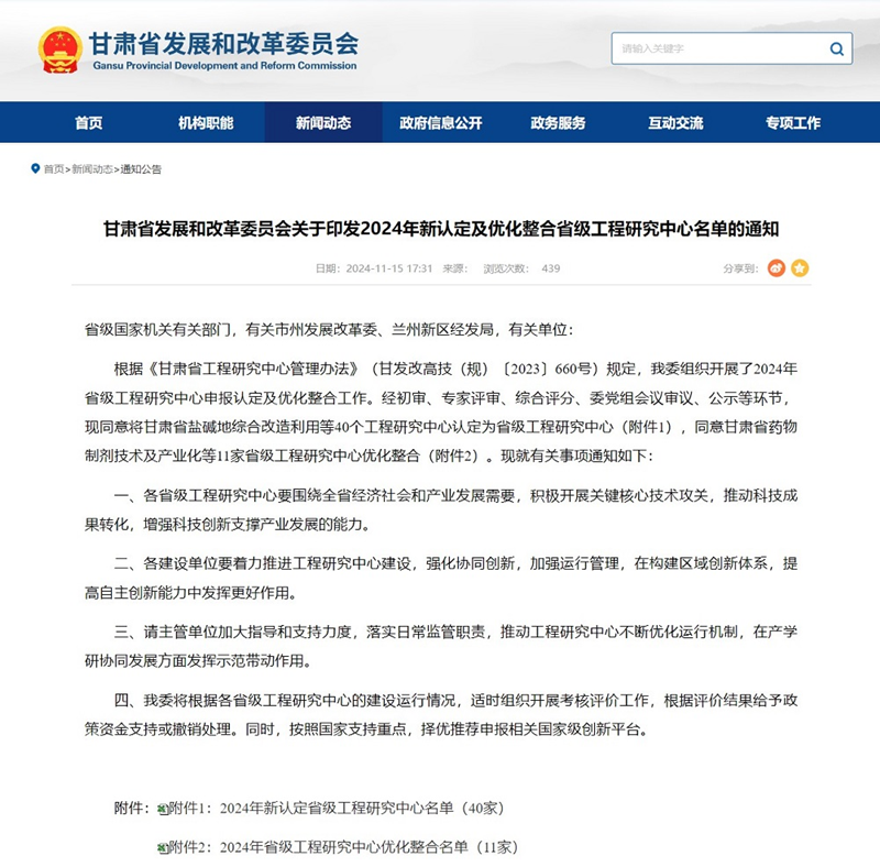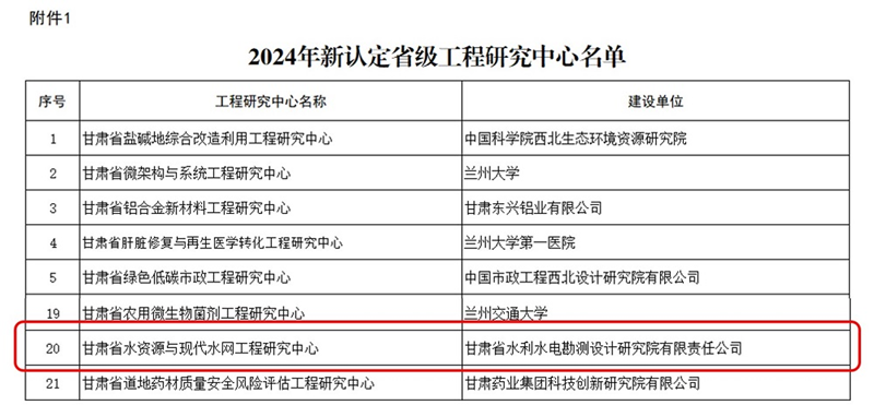 近日,省發(fā)展和改革委員會公布《2024年新認(rèn)定及優(yōu)化整合省級工程研究中心名單》,省水電設(shè)計(jì)院申報(bào)的“甘肅省水資源與現(xiàn)代水網(wǎng)”成功獲批立項(xiàng)“省級工程研究中心”,標(biāo)志著公司在水利工程科研平臺建設(shè)方面取得了重大突破。