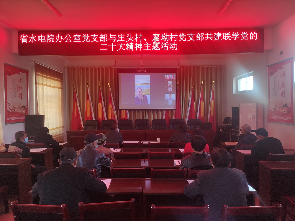 為持續(xù)促進(jìn)黨的二十大精神學(xué)習(xí)貫徹走深走實,使黨的二十大精神進(jìn)村入戶、深入人心,11月22日,甘肅省水利水電勘測設(shè)計研究院有限責(zé)任公司辦公室黨支部與幫扶村西峰區(qū)莊頭村黨支部、廖坳村黨支部開展共建聯(lián)學(xué)黨的二十大精神主題活動。