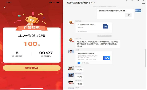 豐富載體,營造濃厚學(xué)習(xí)氛圍。各基層黨支部通過開展“三會一課”,轉(zhuǎn)發(fā)主流媒體報道,分享學(xué)習(xí)輔導(dǎo)資料,線上線下引導(dǎo)黨員通過積極參與集體學(xué)習(xí)、線上答題、視頻學(xué)習(xí)等形式,拓寬學(xué)習(xí)渠道,豐富學(xué)習(xí)載體,全方位、深層次、多途徑開展黨的二十大精神學(xué)習(xí)宣傳工作,多措并舉營造學(xué)習(xí)黨的二十大精神的濃厚氛圍。
