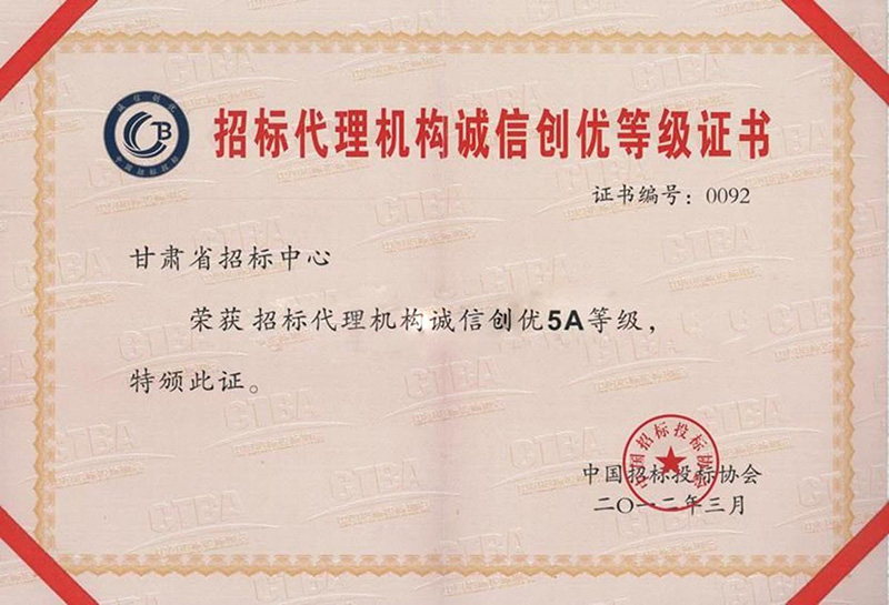 招標(biāo)代理機構(gòu)誠信創(chuàng)優(yōu)登記證書